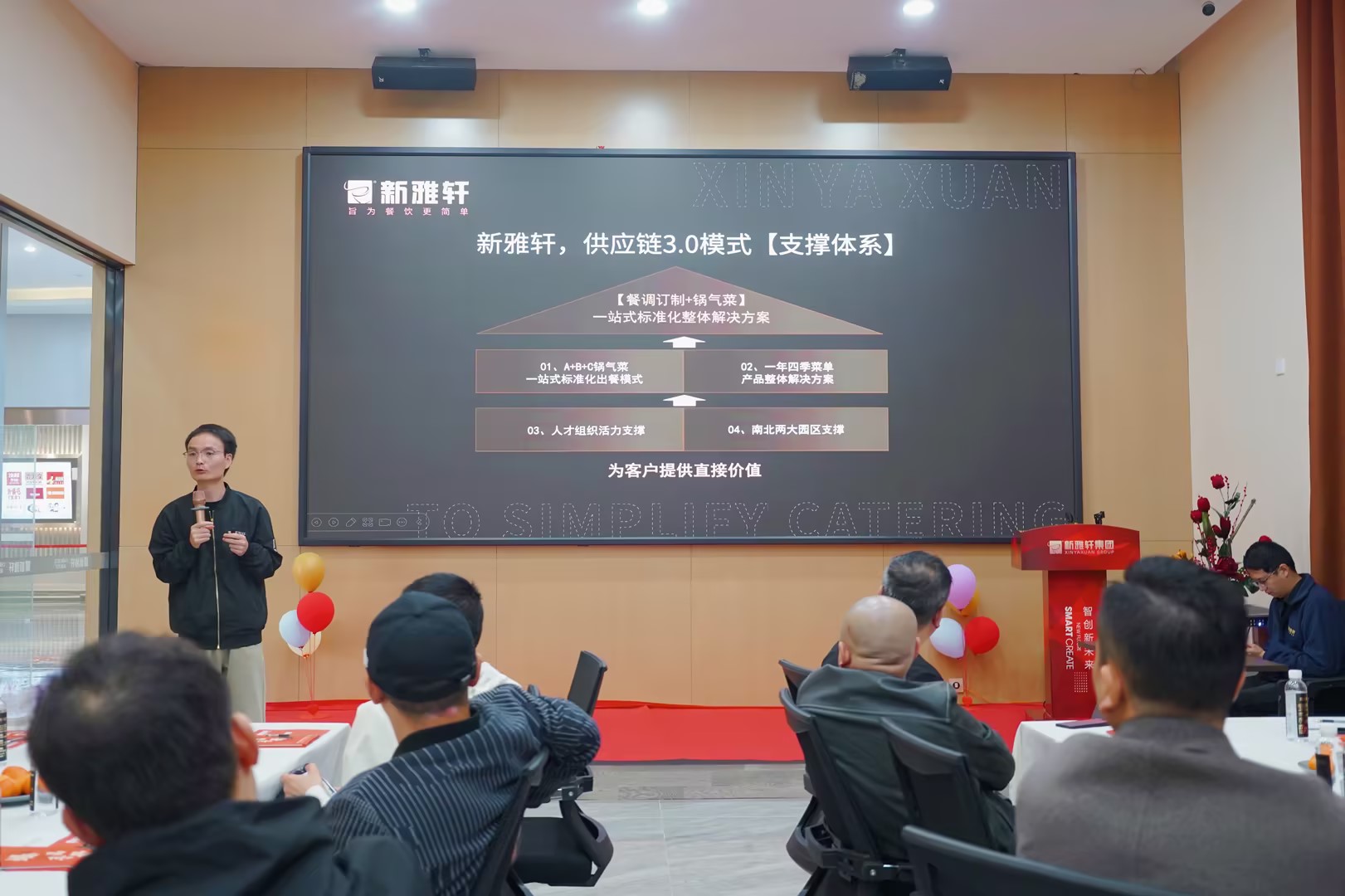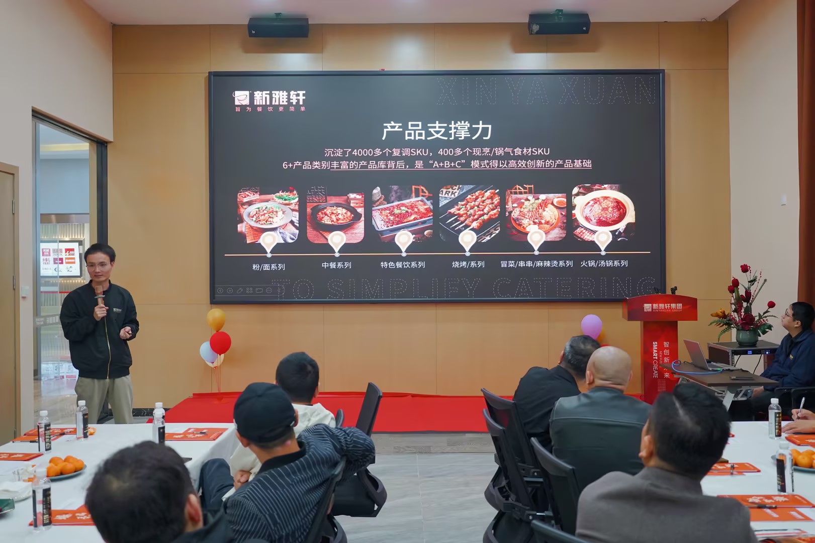 新雅軒張經(jīng)理為到場嘉賓再次詳細介紹了新雅軒供應(yīng)鏈3.0模式,即“產(chǎn)品整體解決方案”,以強大的產(chǎn)品力為基礎(chǔ),新雅軒創(chuàng)新打造了30+產(chǎn)品系列,沉淀4000+味型配方,同時為客戶提供“A+B+C”一站式標準化出餐模式、“一年四季菜單”方案服務(wù),以此提供差異化的直接價值,包括消費者洞察、尋味尋根、產(chǎn)品創(chuàng)研、菜品研發(fā)、毛利控制、出品創(chuàng)意等,助力餐飲品牌提升自身競爭力。
