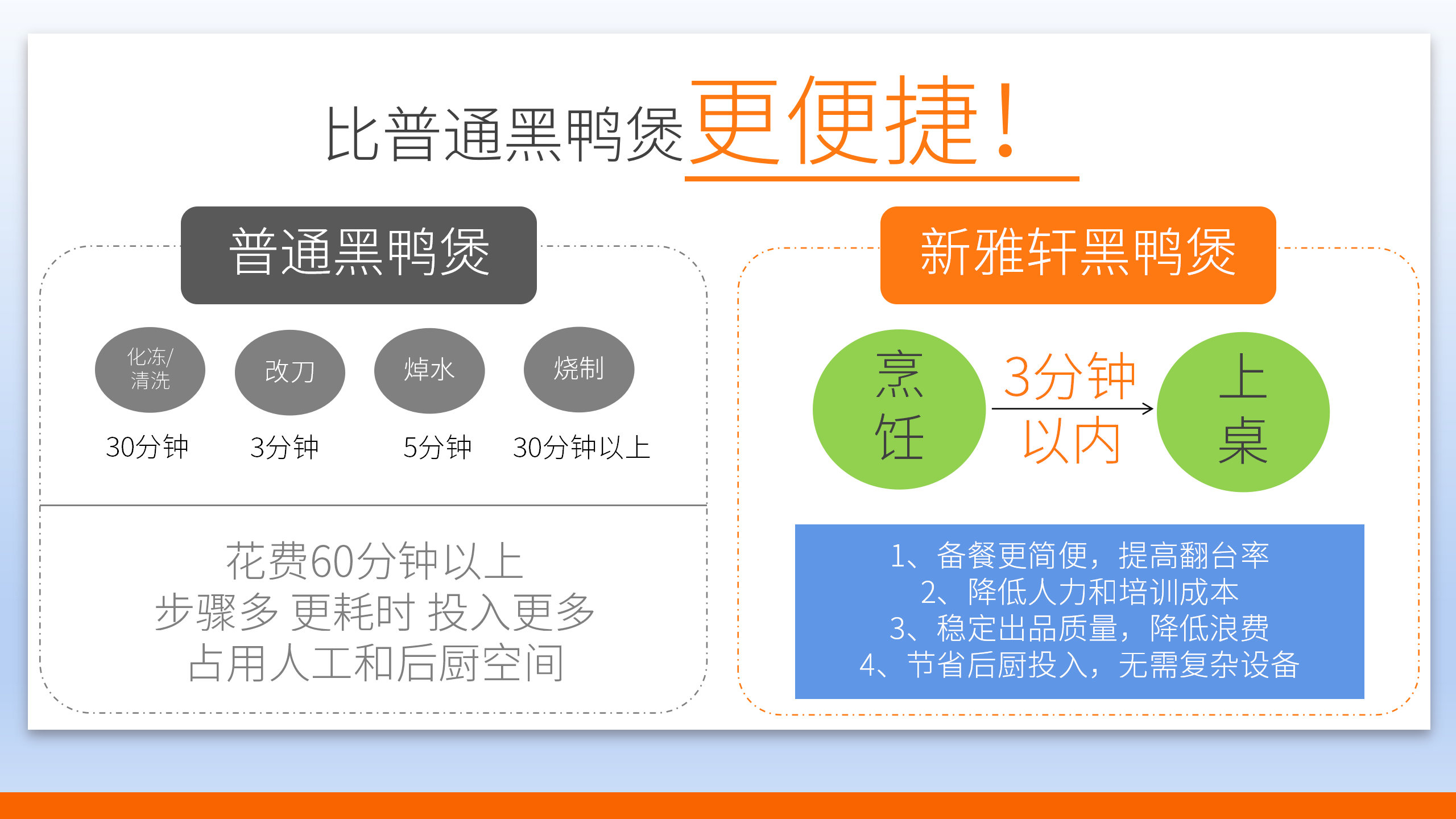但傳統(tǒng)黑鴨煲制作很費(fèi)精力和成本,依賴大廚經(jīng)驗(yàn),備菜工序繁瑣、味道不穩(wěn)定、成本難控制,連鎖化擴(kuò)店時(shí),門店出品難以標(biāo)準(zhǔn)化,無(wú)法兼顧各地口味。