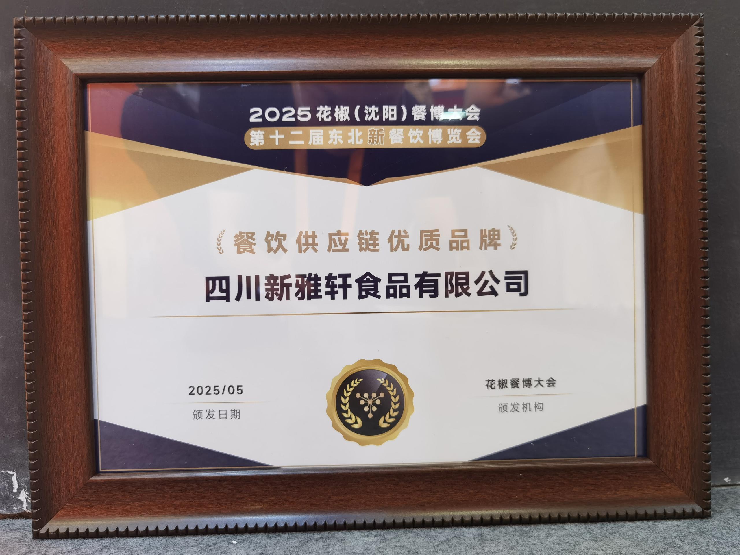 同時(shí),憑借優(yōu)質(zhì)產(chǎn)品和高效客戶服務(wù),在花椒餐博大會(huì)頒獎(jiǎng)典禮上,新雅軒從眾多參會(huì)供應(yīng)鏈中脫穎而出,成功斬獲“餐飲供應(yīng)鏈優(yōu)質(zhì)品牌”。